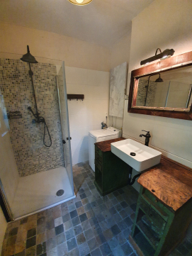 Das ausgefallene Badezimmer fügt sich dem Stil der restlichen Räume an und bietet den idealen Start in einen etwas anderen Tag. Vielleicht ist es der Goldschmiedetisch vom 19. Jahrhundert, der als